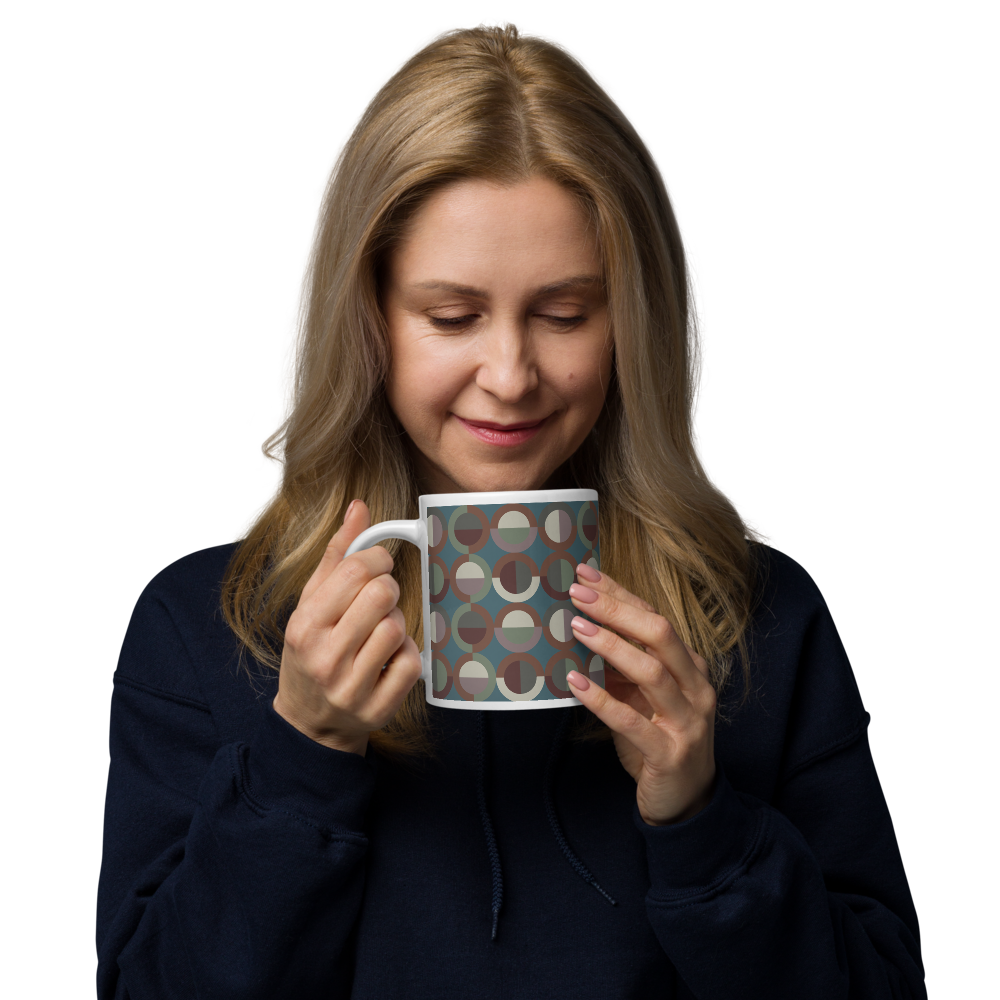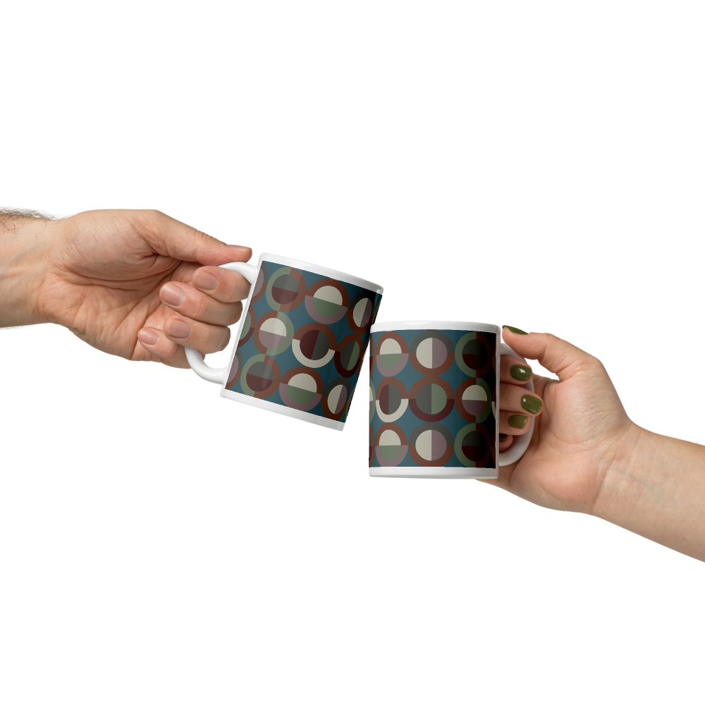 Designed with fun, colorful circles for your emotional spirals. These mugs offer satisfying symmetry and playful color, designed for the distracted and the decorative.