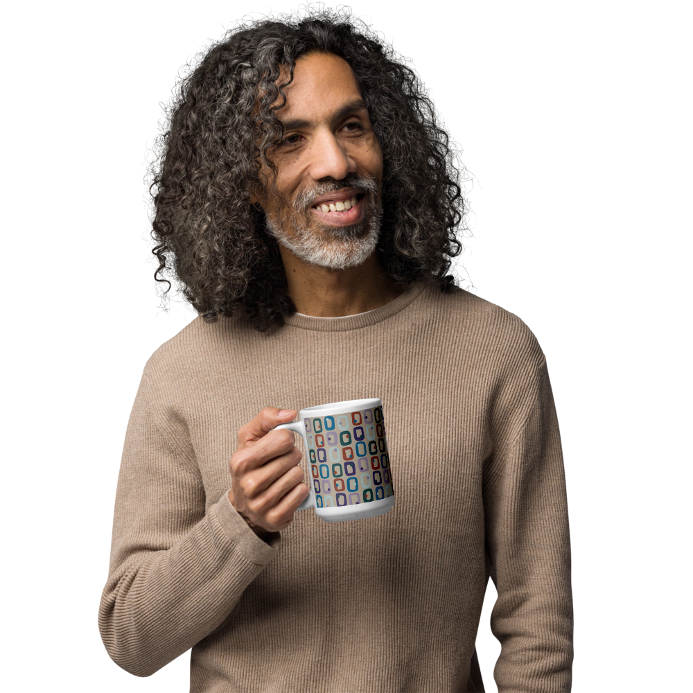 Retro Rectangles is a hand-drawn patchwork of bright blocks and vintage flair—imperfect, fun, and full of caffeine potential.